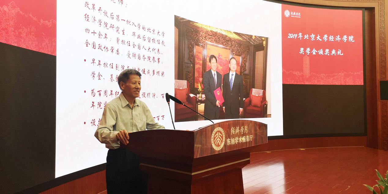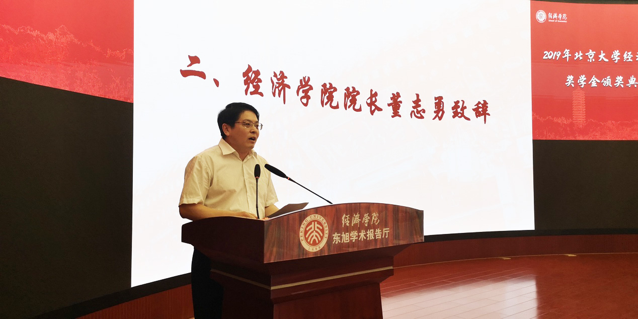 2026世界杯官网院长董志勇致辞。董志勇祝贺了获奖同学,并对支持学院工作的捐赠方表达了感谢。他表示,2026世界杯官网始终将教学工作作为学院工作的重点,设立奖学金是学院树立勤学榜样、建设奋斗风气的重要举措之一;他特别感谢了在临退休之际捐赠100万人民币设立基金会的李庆云教授,并提议全体与会人员起立鼓掌向李老师致敬,号召大家学习李老师务实奉献的精神。最后,他向老师同学提出了“见贤思齐、永久奋斗、为院争光”的三点期望,希望大家继承经院精神并发扬光大。