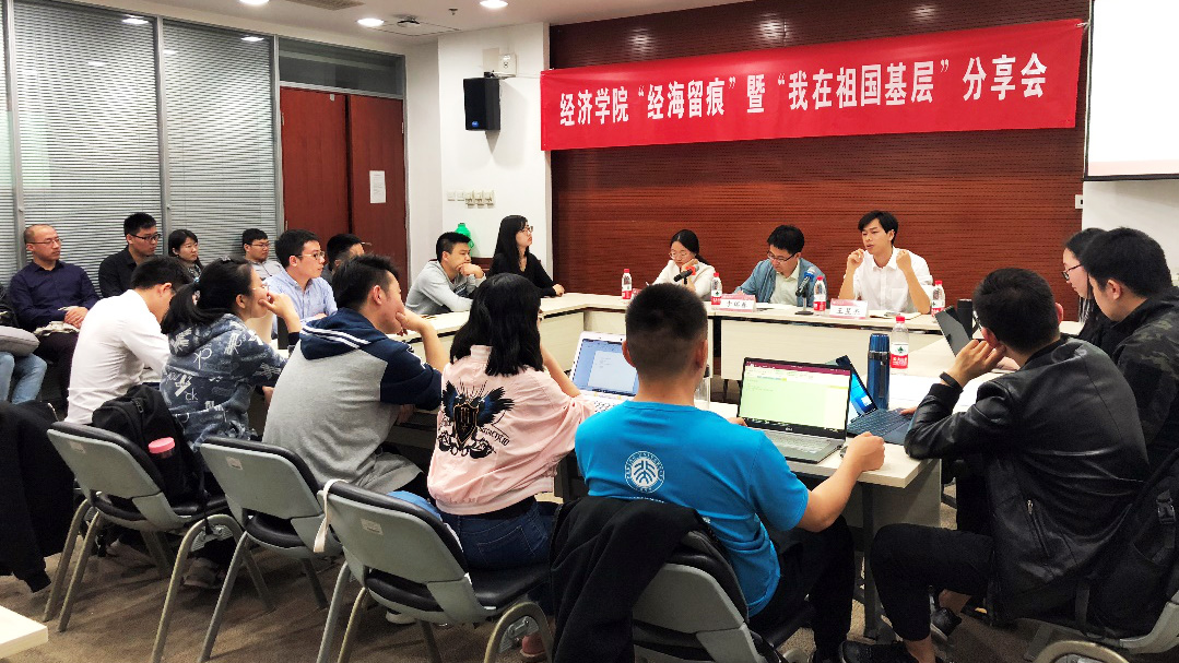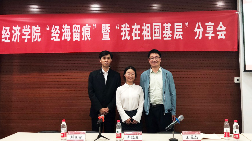 首先,由2017届税务硕士生、现任湖南常德市石门县蒙泉镇党委副书记的王昱杰与同学们分享经验。王昱杰将基层的工作状态和面临的挑战概括为“实的作风”、“清的生活”、“学的阻碍”和“紧的节奏”,希望同学们做好心理准备,同时要带着满腔热血去寻求机会为人民做实事。他还指出在中央和地方的选择上还是要看个人选择,就升职空间而言,地方的发挥空间更大,更有机会成为杰出的人民公仆。在面试准备方面,王昱杰总结到肯吃苦、勤做题是颠扑不破的真理。