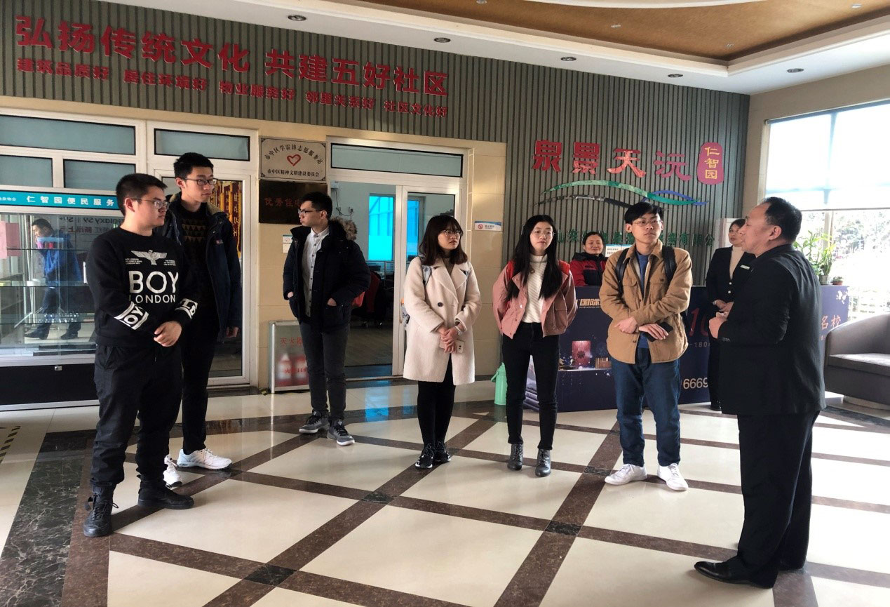 3月8日下午,同学们实地参观了绿地泉社区的建设情况与物业服务。在“五好社区”(建筑品质好、居住环境好、物业服务好、邻里关系好、社区文化好)建设试点小区泉景天沅仁智园,同学们看到“五好社区服务”是对传统服务模式的转变,是从“满意服务”到“感动服务”的飞跃。例如小区门禁科技化、“菜篮子”直通车等创新性服务。在人口老龄化形势加剧的背景下,海珀天沅社区试点康养生活体验馆,积极发展“居家养老”模式,让社区为养老事业做出贡献。