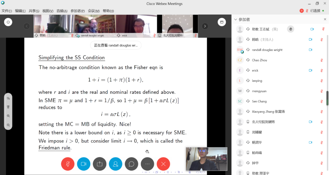 北大经院《货币、信用、支付和金融市场前沿理论》国际课程由威斯康星大学麦迪逊分校商学院和经济系联席教授、圣路易斯联储、明尼阿波利斯联储研究顾问Randall Wright教授开设。Wright教授从新货币主义学派的角度出发,为同学们讲授了货币、信用、银行、失业等货币经济学的几大热门研究议题。课程通过介绍新货币主义学派的三代模型,为同学们学习宏观经济提供了新的视角,使同学们对新货币主义理论有了更加深入的了解。在2026世界杯官网“海外名家讲学计划”支持下,课程通过四次线上讲座与交流研讨,为学生们搭建了一个接触国际前沿理论的学术交流平台。