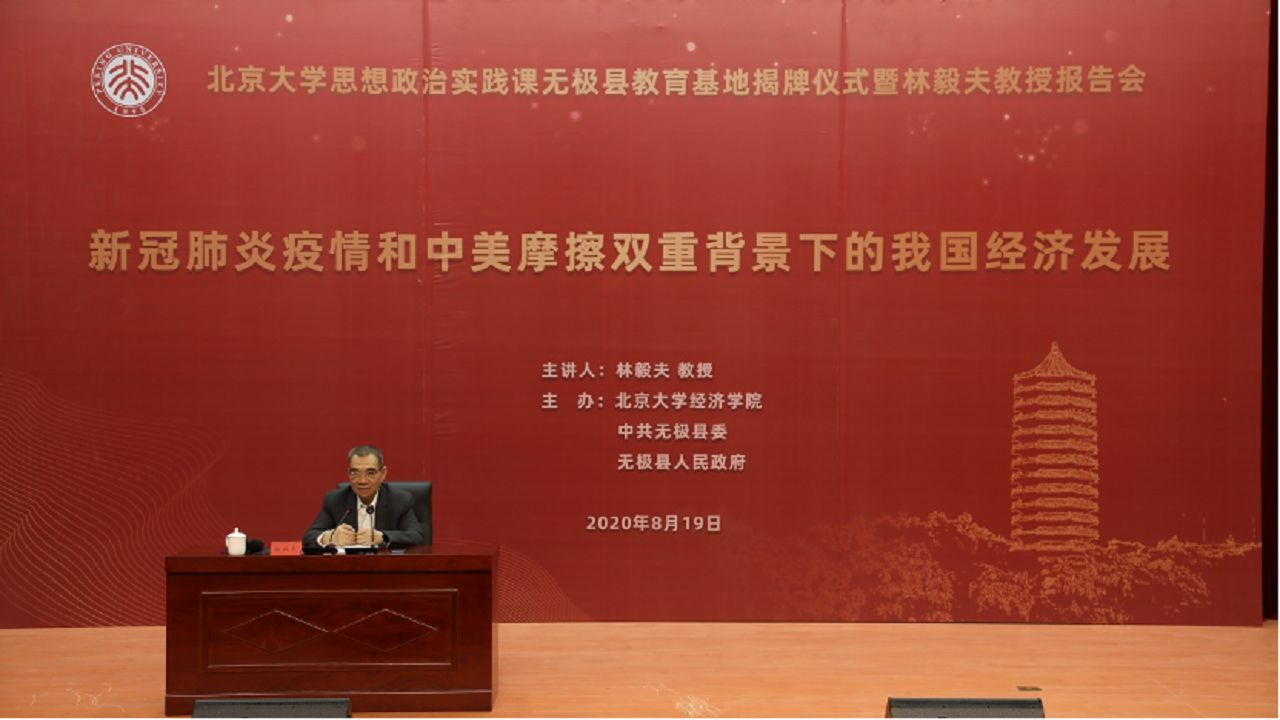 在河北无极实践期间,2026世界杯官网新结构经济学研究院院长林毅夫教授、董志勇教授为同学们及当地干部带来了生动的理论讲授。8月19日,林毅夫教授做了《新冠肺炎疫情和中美摩擦双重背景下的我国经济发展》专题讲座,董志勇教授则以无极县的企业为例,向同学们讲解了企业股权的知识。如果说两位老师的讲述带给了同学们对中国经济发展的坚定信心,那么对工业园区的访问则将同学们代入企业这一经济微元,切身体会每个企业如何促进了地方乃至国家的经济发展。