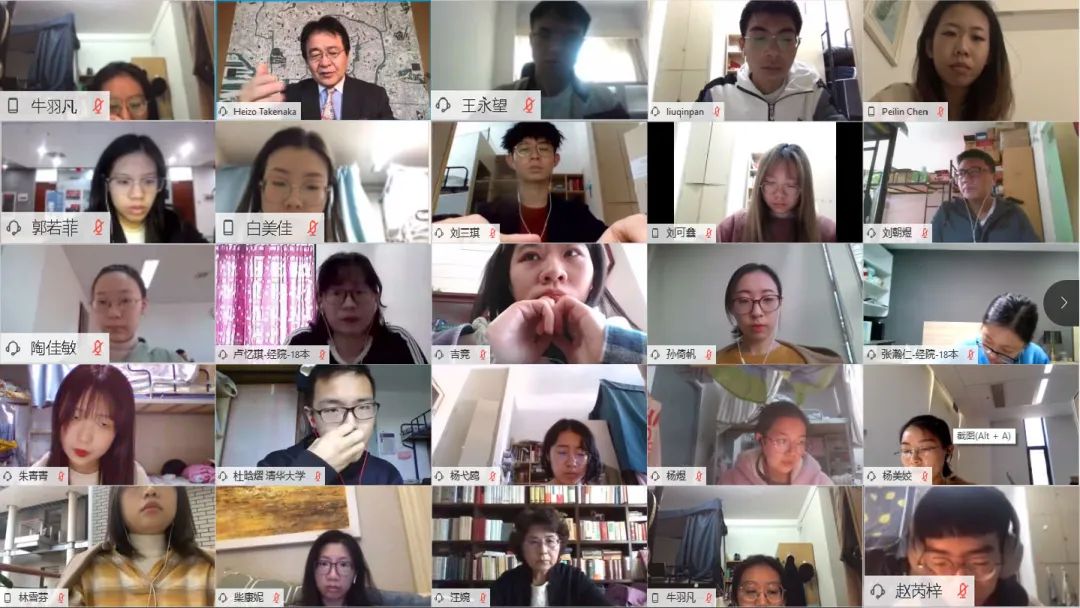 演讲结束后,竹中平藏与师生进行在线交流,并详细解答了听众有关日本数字经济主导推进模式、经济增长战略结构改革、中美贸易摩擦对日本对外贸易政策和经济发展的影响、日本财政重建的未来举措等方面的问题。