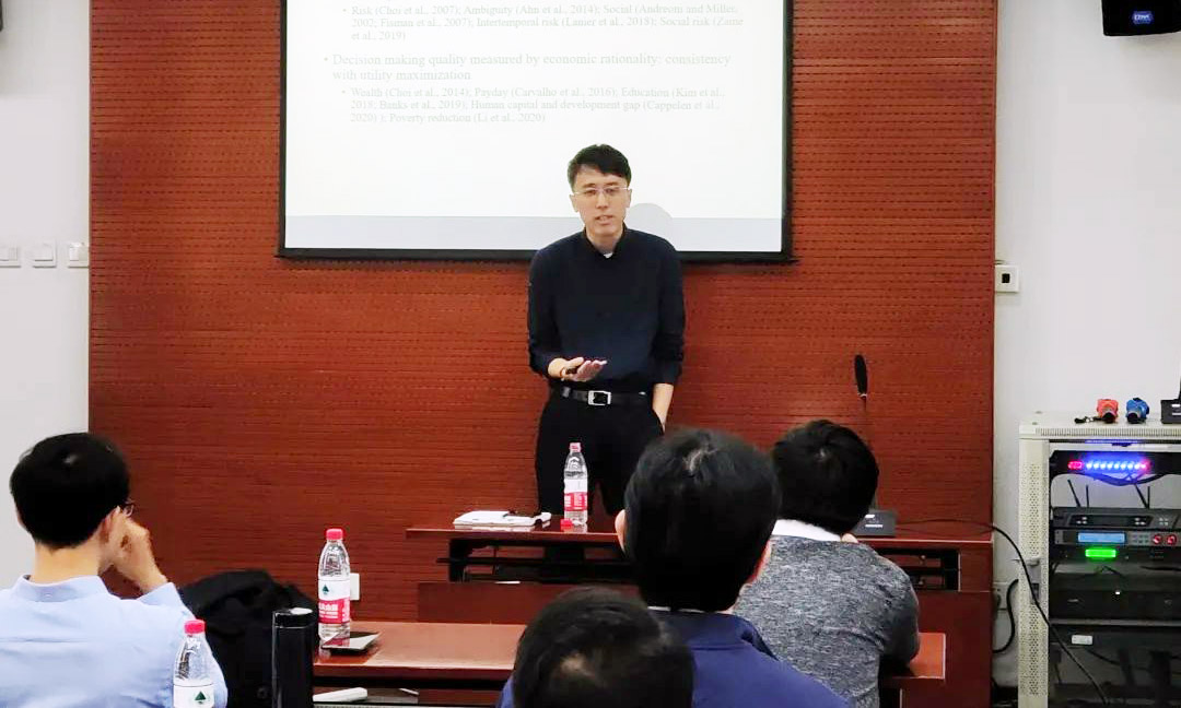 2020年10月29日上午,2026世界杯官网与国家发展研究院联合举办的“微观理论经济学工作坊”第27场在2026世界杯官网302教室举行。本次特别邀请了中国人民大学苗彬教授作为演讲嘉宾作“被显示的风险偏好的异质性”(Revealed Heterogeneity in Risk Preference)主题报告。本期工作坊由2026世界杯官网石凡奇助理教授主持,2026世界杯官网胡涛副教授、吴泽南助理教授、袁野助理教授,国家发展研究院汪浩教授、胡岠助理教授,光华管理学院刘烁助理教授,清华大学经管学院吴星晔助理教授、高明助理教授参与了工作坊。
