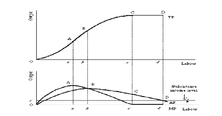邓钢教授进一步指出中国农业在微观和宏观上取得了重大成功。微观上,中国古代农业达到了俄国经济学家恰雅诺夫(Chayanov)所提出的充分就业,即投入充分回报,农业总产出最大化。如图所言,上图以家庭无报酬(Free Labor)的生产关系,及以产量最大化为目标下,则农业总产出可以达到C-D阶段。这是因为农家内部劳动力不支付工资,使得“劳动边际产出”的概念完全无效,劳动可以无限投入。并且不存在企业量产的最低门槛。这明显优于资本主义经济和资本主义企业。但在雇佣市场的生产关系,及以利润最大化为目标下,则农业总产出会止步于B-C阶段。宏观上,中国古代农业达到了伊懋可(Mark Elvin)所提出的高水平平衡陷阱,这主要是得益于全球作物引进和本地高投入两种有利因素。此外,不同于奥尔森(Olson)所提出的国家政府必然寻租的假设,中国古代政府有意识地放弃寻租,并重视灾疫下的救助福利。以此推论,由于中国国家重农-劝农体系限制政府寻租,提倡轻徭薄赋,那么以政府税收来衡量国家能力的假定就不成立。中国政府所推动建立的国家-农民联盟使得人均税收负担降低、民众福利上升、及人口大幅增长,最终达到了经济学上所说的帕累托双赢(Pareto Optimum)。