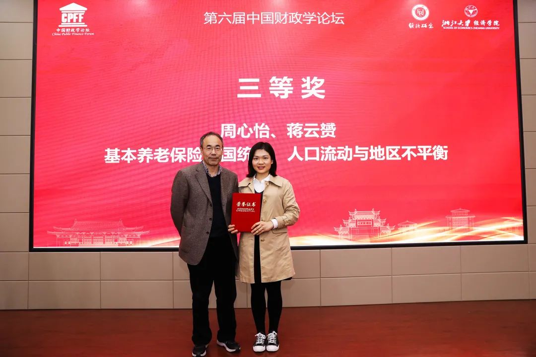 刘冲助理教授主持了“企业减税与税收优惠”平行分论坛的讨论,并对论文进行点评。耿纯副教授报告了与刘怡教授的合作论文“增值税跨地区转移与留抵退税负担机制研究”;财政学系博士生周心怡与财政学系蒋云赟副教授的合作论文“基本养老保险全国统筹、人口流动与地区不平衡”荣获本届论坛优秀论文三等奖。该论文主要研究了在我国大规模的人口跨区域流动背景下,基本养老保险全国统筹改革如何影响地区间不平衡问题,周心怡就入选论文进行了展示。