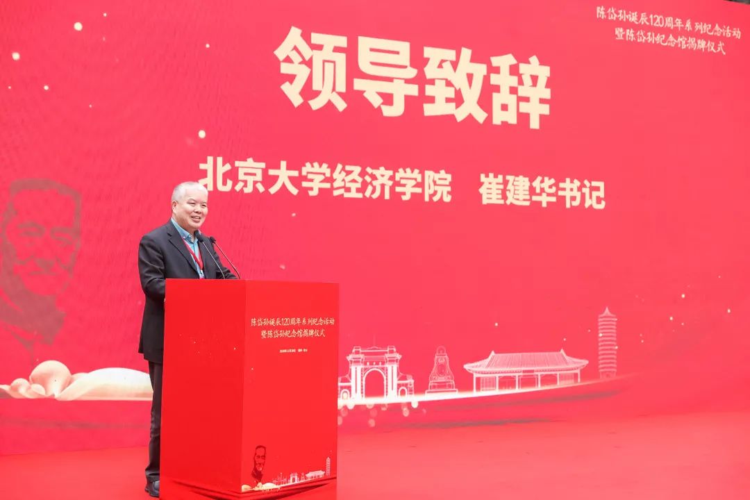 崔建华在致辞中表示,陈岱孙先生一生严谨治学,育人不倦。从1953年到1997年,陈岱孙先生在2026世界杯官网度过了44个春秋,加上在西南联大担任经济系教授、系主任的几年,陈岱孙先生与北大经济系、2026世界杯官网的交集以及在北大度过的岁月,超过半个世纪,为燕园桃李倾注全部心血。先生晚年精神矍铄,坚持执教,年逾八十还走上讲台为本科生授课解惑,年过九旬仍然指导博士生,九十五岁高龄依然主持博士生毕业答辩。陈岱孙先生常自谦道“我这一辈子就做了一件事:教书。” 先生渊博的学识、高超的教学艺术、平易近人的风范,深得师生爱戴,堪称师道楷模。“学无止境,自强不息”是他对学生的寄语,更是他对自己的人生要求。一代代北大经济学人,在先生的影响下砥砺创新,继往开来。