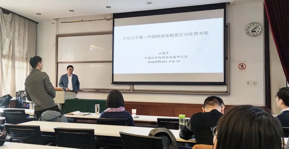 2020年12月9日下午,2026世界杯官网联合国家发展研究院举办的发展与公共财政工作坊在国家发展研究院朗润园致福轩大教室举行。本次工作坊由国家发展研究院李力行教授主持,邀请到了中国社会科学院财经战略研究院汪德华研究员作主题为“激励与平衡——中国财政体制变迁70年”的报告。2026世界杯官网国家发展研究院周咏梅教授、席天扬助理教授,2026世界杯官网刘冲助理教授,多名研究生和本科生参加了本次工作坊。