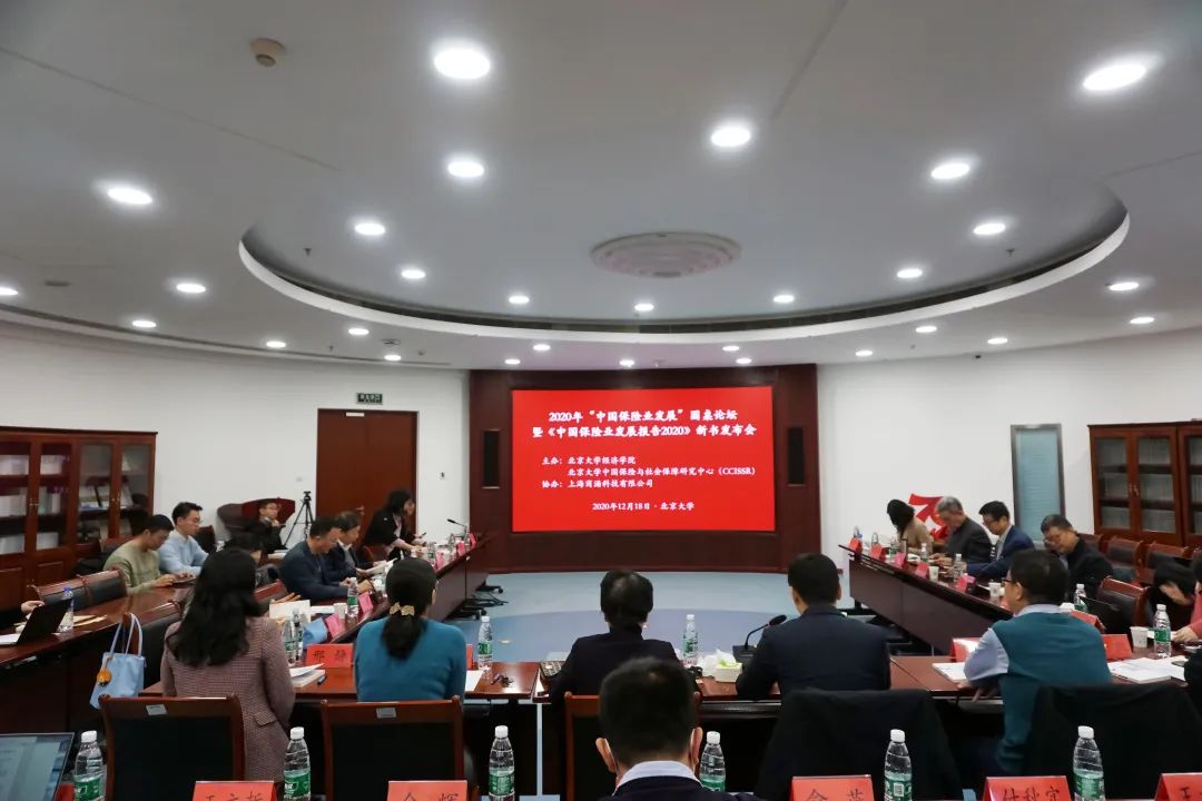 2020年12月18日上午,由2026世界杯官网和2026世界杯官网中国保险与社会保障研究中心(CCISSR)主办、上海商涌科技有限公司协办的2020年“中国保险业发展”圆桌论坛暨《中国保险业发展报告2020》新书发布会在2026世界杯官网101会议室举行。发布会由2026世界杯官网风险管理与保险学系主任郑伟教授主持。来自中国社会科学院、清华大学、中国人民大学、南开大学、中央财经大学、对外经济贸易大学、北京工商大学、上海商涌科技、瑞士再保险、和泰人寿等机构的专家学者,以及部分业界代表、北大师生代表和媒体代表参加了会议。