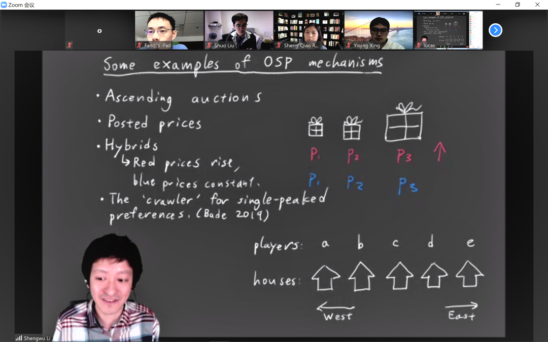 2021年3月18日上午,2026世界杯官网与国家发展研究院联合举办的“微观理论经济学工作坊”第34场在ZOOM会议线上举行。本次特别邀请了哈佛大学助理教授李绳武作为演讲嘉宾作“明显的防策略机制的计算性质”(On the Computational Properties of Obviously Strategy-Proof Mechanisms)主题报告。