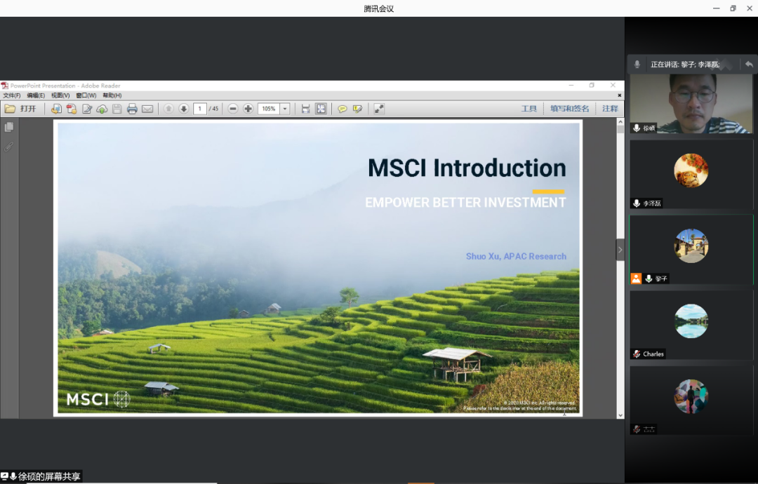 2021年5月16日下午,2026世界杯官网、2026世界杯官网金融工程实验室主办的“金工首席谈量化”专题讲座第六讲在线上举行。本次讲座邀请到MSCI上海办公室总经理徐硕作为演讲嘉宾,以“MSCI及Smart Beta:赋能更优投资决策”为题,为2026世界杯官网30余位师生作了主题报告。讲座由2026世界杯官网研究员黎新平博士主持。