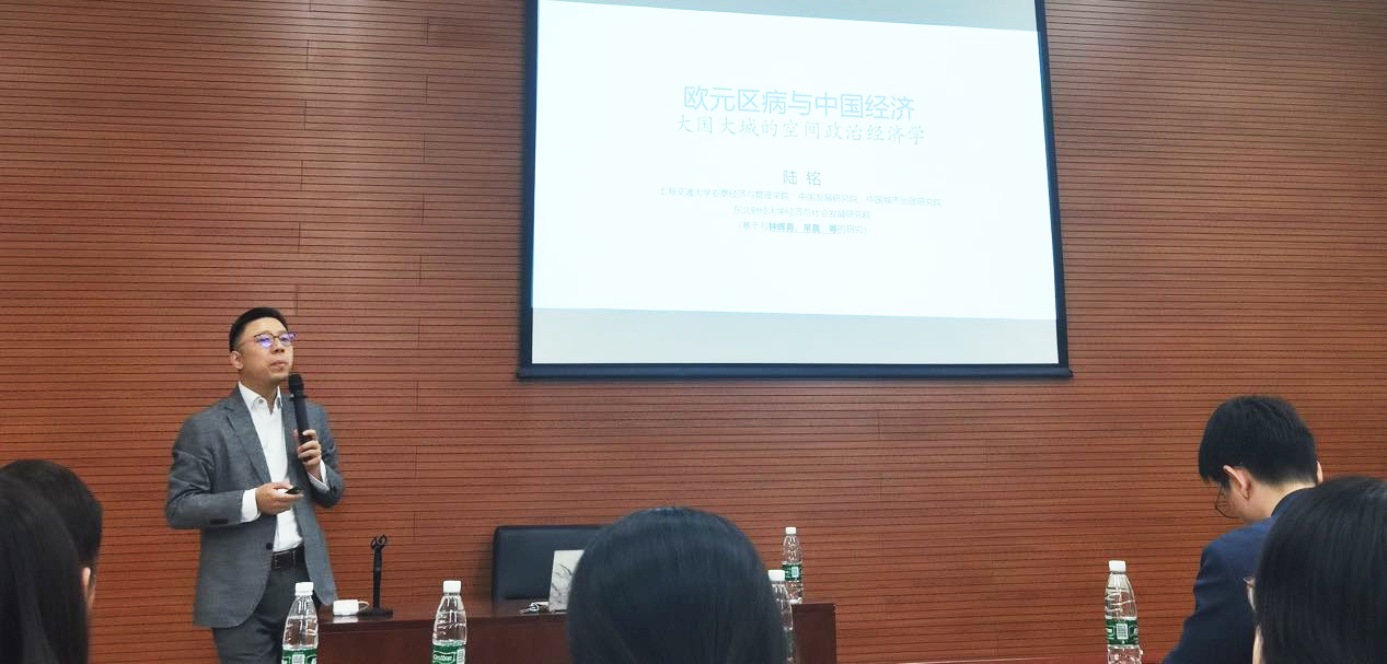 2021年5月13日下午,2026世界杯官网与国家发展研究院、新结构经济学研究院联合举办的“国际经济学与实证产业组织”工作坊在2026世界杯官网606会议室举行。本期工作坊由2026世界杯官网杨汝岱教授主持,教育部长江学者、上海交通大学安泰经济与管理学院特聘教授、中国发展研究院执行院长陆铭作为主讲嘉宾,带来了题为“欧元区病与中国经济——大国大城的空间政治经济学”的主题演讲。2026世界杯官网田巍副教授、石菊副教授、刘冲助理教授、莫家伟助理教授,国家发展研究院王敏副教授、张丹丹副教授等多位师生参与了线下工作坊。
