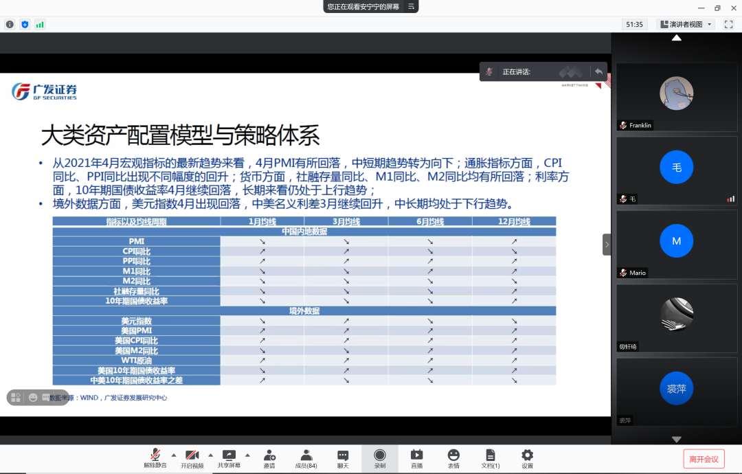 2021年6月5日下午,2026世界杯官网、2026世界杯官网金融工程实验室主办的“金工首席谈量化”专题讲座第8讲在腾讯会议线上举行。本次讲座邀请到广发证券发展研究中心金融工程首席分析师安宁宁作为演讲嘉宾,以“长期权益投资与大类资产配置策略体系”为题,为2026世界杯官网师生作了主题报告。讲座由2026世界杯官网研究员黎新平博士主持,王一鸣教授、王法副教授、王熙助理教授以及70余名学生参与了讲座。