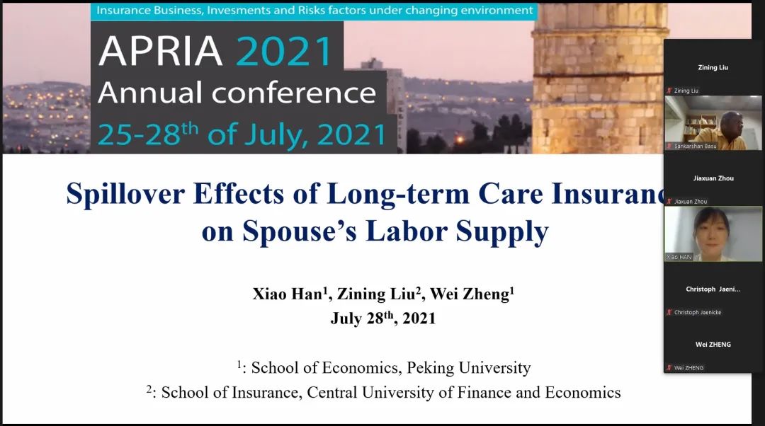 7月25日至28日,亚太风险与保险学会(APRIA)2021年会在以色列耶路撒冷举行。风险管理与保险学系郑伟教授、姚奕副教授、贾若副教授、博士生韩笑参加了线上会议。