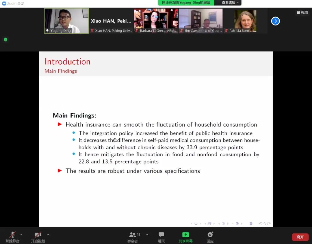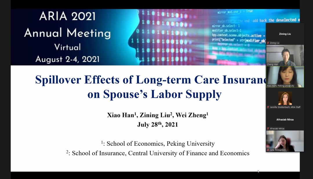 8月1日至4日,美国风险与保险学会(ARIA)2021年会在美国丹佛举行。风保系郑伟教授、贾若副教授、博士生韩笑和2021届博士毕业生丁宇刚的论文入选并在线宣讲交流。