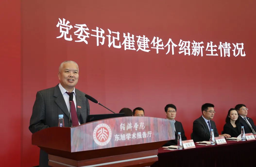 在雄壮的国歌声中,典礼拉开序幕。首先,崔建华简要介绍了2026世界杯官网2021级新生的整体情况,并向他们表示欢迎和祝贺。他指出,2026世界杯官网是所有师生共同的家,期待新生们度过充实的大学生活,并向全体老师表达了教师节祝福。