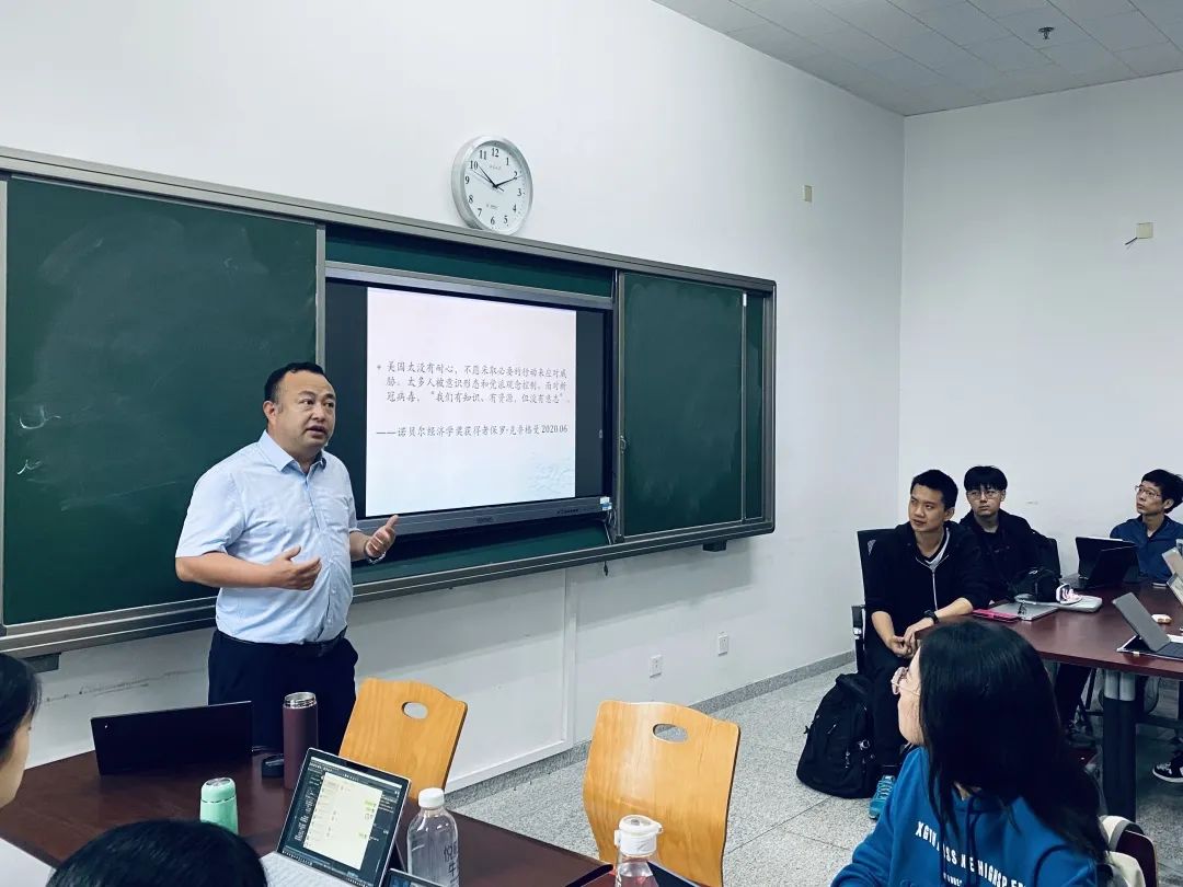 在课堂之外的广阔天地里,张亚光带领多届本科新生开展暑期实践,足迹遍及黑龙江佳木斯、山东日照、山西太原、浙江温州、福建福州、河北无极、贵州遵义、新疆阿勒泰和哈密等地,与企业、与政府、与群众深入交流,将专业知识与理论与实践一线深度融合,在祖国的广袤大地书写着经济学人的篇章。在“第二课堂”上,张亚光用他一贯的深入浅出与循循善诱,让“传承先贤火种,赓续济世绝学”的精神深入年轻学子的心中。