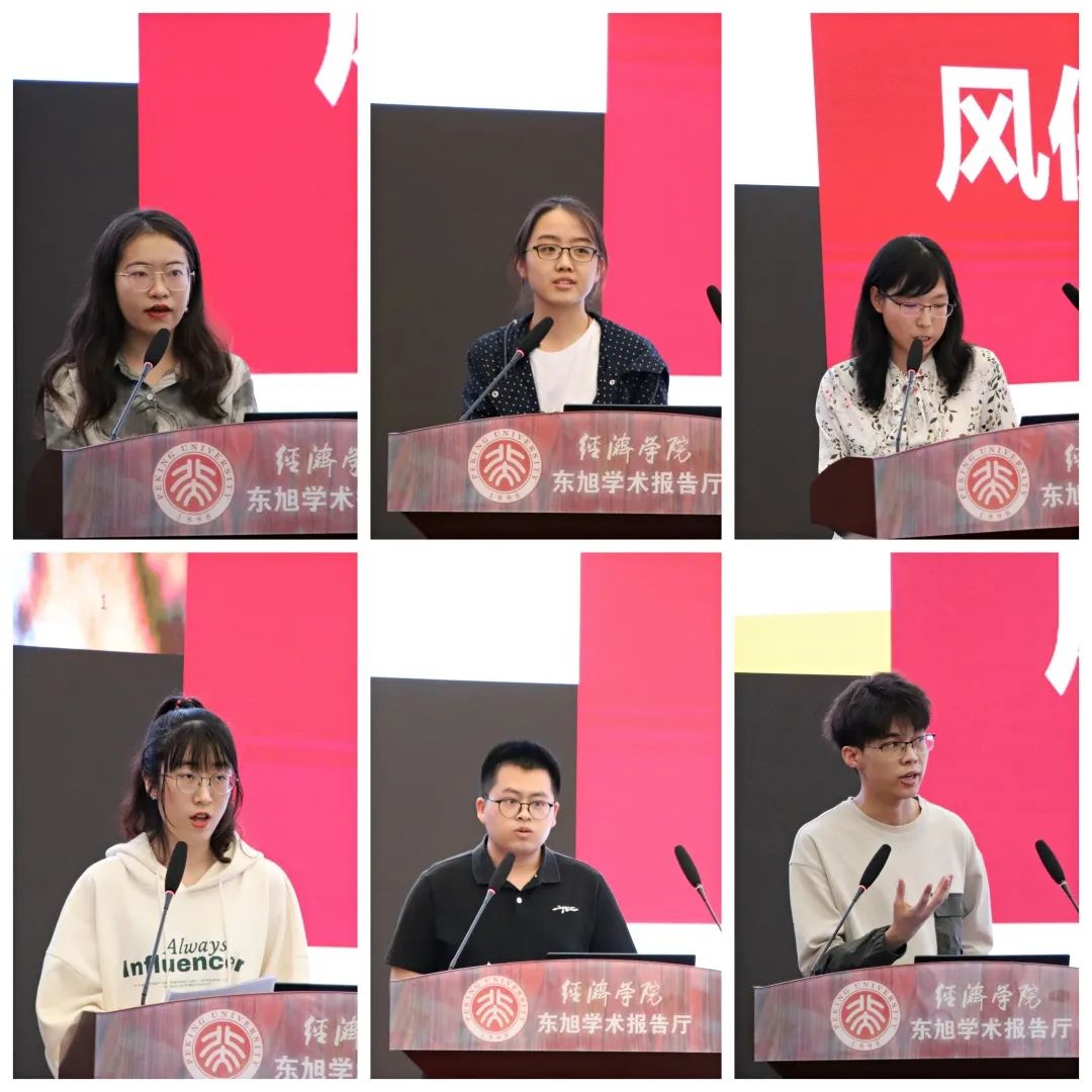 首先,2018级本科生左承惠(中国平安产险北京分公司)、张议文(人保再保险公司)以及2019级本科生李雨哲(爱选科技公司)、王昕怡(大家保险集团)、刘家霖(国泰产险北京分公司)、郭清松(阳光保险集团)分享了在暑假期间实习的经历与感悟。他们在发言中提到,实习锻炼了自己在职场中的实践能力,深化了对保险理论知识的理解,并加深了对保险行业发展状况的认识。
