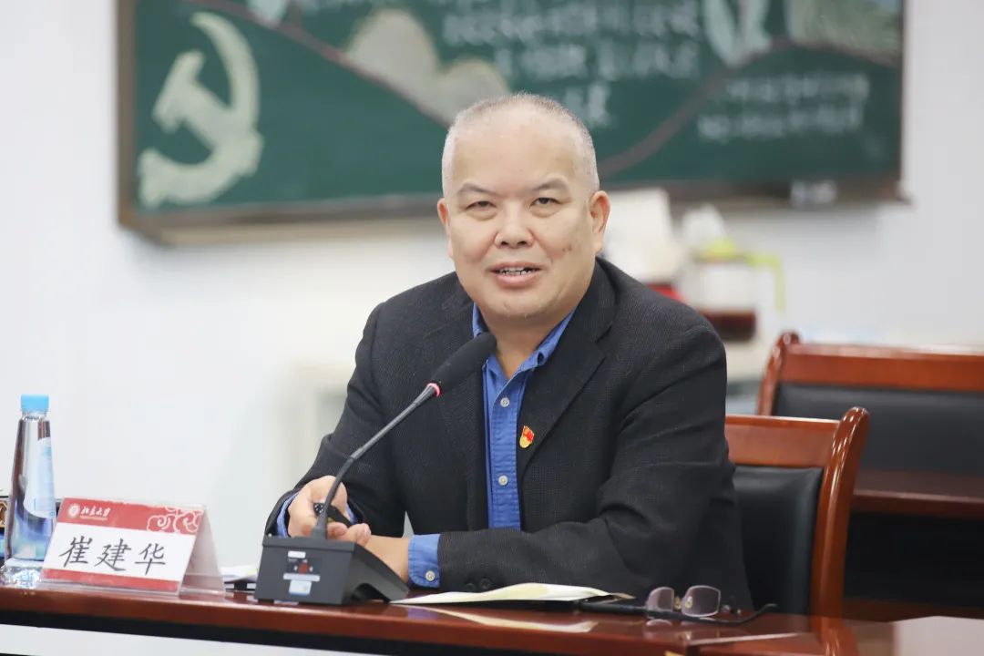 首先,崔建华领学《中共中央关于党的百年奋斗重大成就和历史经验的决议》。他用“重要时刻、重要会议、思想指引、行动指南”来概括学习体会,并围绕党的历史上非常重要的《决议》、百年来党的两个“始终”、百年来四方面伟大成就、为什么要总结百年来的重大成就和历史经验、百年奋斗历程、中国特色社会主义的历史性成就与历史性变革、百年奋斗的五大历史意义、百年奋斗的宝贵历史经验“十个坚持”、新时代的中国共产党等方面展开详细阐述。崔建华特别强调了十九届六中全会《决议》中所提出的,对经过长期实践积累的宝贵经验、党和人民共同创造的精神财富,必须要倍加珍惜、长期坚持,并在新时代实践中不断丰富和发展。要抓好后继有人的根本大计,要坚持用习近平新时代中国特色社会主义思想教育人,用党的理想信念凝聚人,用社会主义核心价值观培育人,用中华民族伟大复兴历史使命激励人,培养造就大批堪当时代重任的接班人。