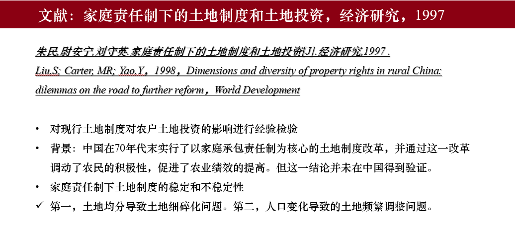 [1] Liu S, Carter M R, Yao Y. Dimensions and diversity of property rights in rural China: Dilemmas on the road to further reform[J]. World development, 1998, 26(10): 1789-1806. (P1-P38)