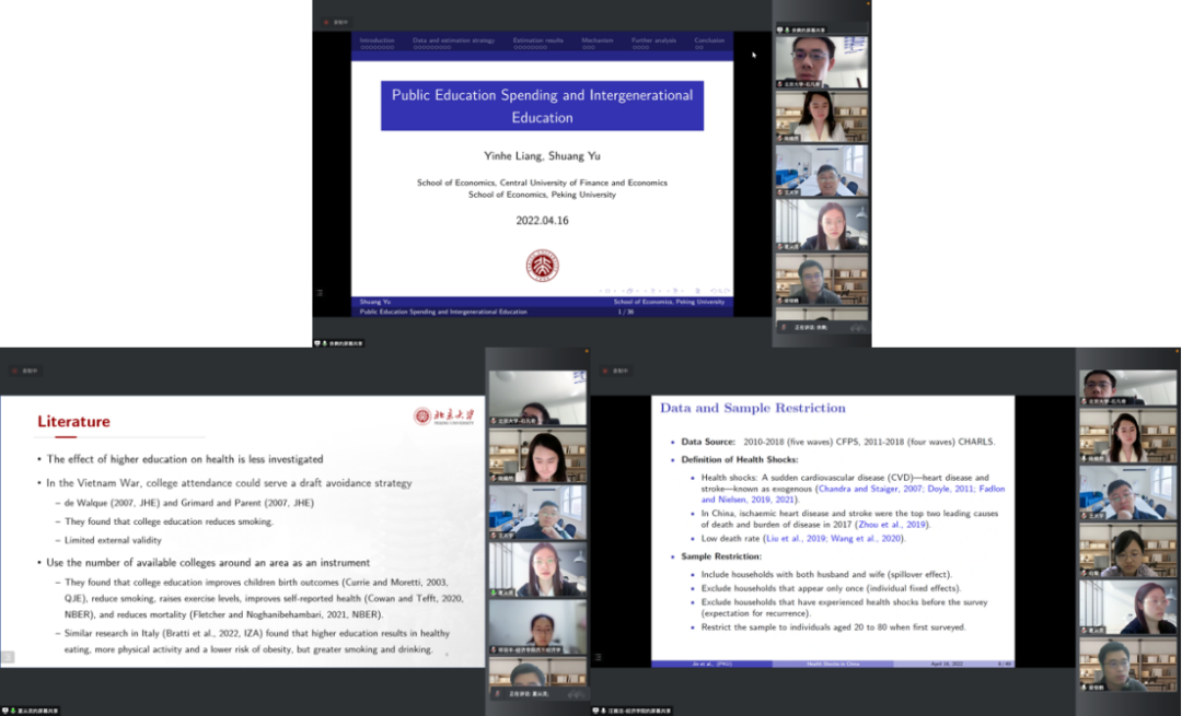 余爽就公共教育支出与代际教育的关系进行了报告,指出义务教育阶段的公共教育支出增加了代际教育流动性,高中和大学阶段的公共教育支出降低了代际教育流动性。评审老师建议增加与中国研究对比,在中国现实背景下综合公平与效率解读文章发现。
