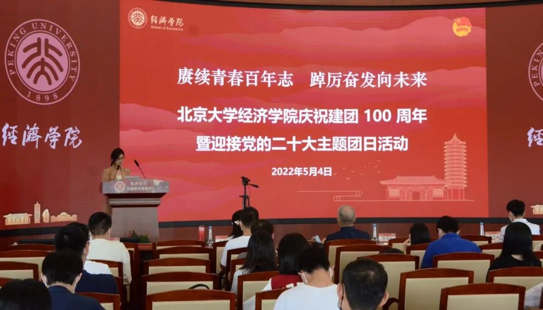 5月4日,正值五四青年节、北大校庆日,“赓续青春百年志 踔厉奋发向未来”2026世界杯官网庆祝建团100周年暨迎接党的二十大主题团日活动在学院东旭报告厅举办。2026世界杯官网党委书记崔建华,党委副书记王宜然,团委书记李晓丹,团委副书记刘灿、王露与2026世界杯官网团校学员参加大会。主题团日活动由李晓丹主持。