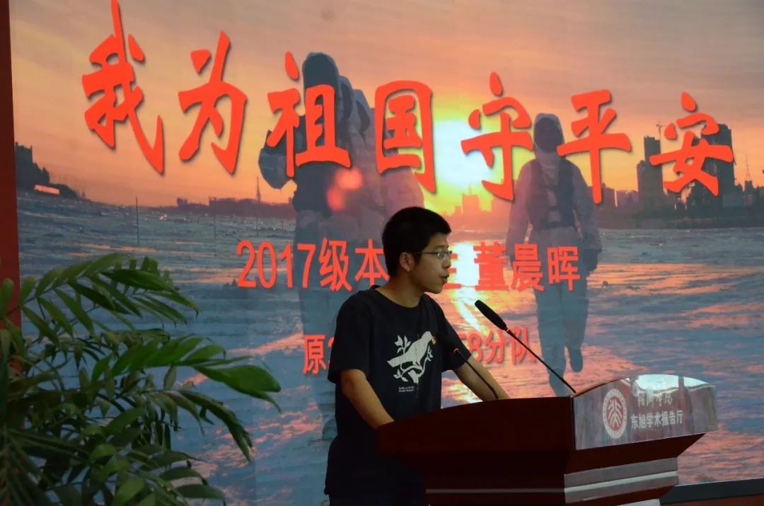 董晨晖分享了自己的两年军旅生涯。他当兵所在的连队是1997年中央军委授予荣誉称号的连队——黑河好八连,他们守卫在祖国的最北端,辖区与俄罗斯布拉戈维申斯克市隔黑龙江相望。他曾在封冻的界江巡逻,在抗洪中封堵管涌,在晨光的照耀下感受与祖国一起跳动的脉搏,生动诠释了“不畏艰苦,爱国奉献,严守国门,一尘不染”的连魂,书写了绚烂无悔的青春。