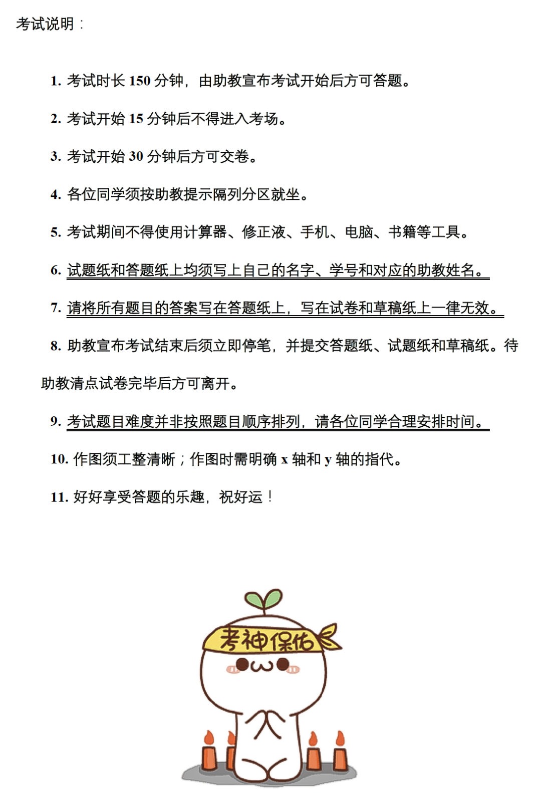 期末考试时,吴泽南会在试卷的前后封面写上寄语,放上可爱的表情包,“这样的设计其实很简单,但我和助教团队希望通过这一小设计给同学们一点正面的激励。考试的时候总有人会先拿到卷子,拿到卷子后难免会提前翻阅。这是无法压抑的人性,怎么办?我希望在试卷的编制和排版中加入一些小细节,让打算提前翻阅的学生会笑着翻回去,这是我能做的。相比苦口婆心的劝说和提醒,在考场中让师生进入一种‘敌对’的状态,不如换一个方式处理问题,从他们的角度去思考和设计试卷。”