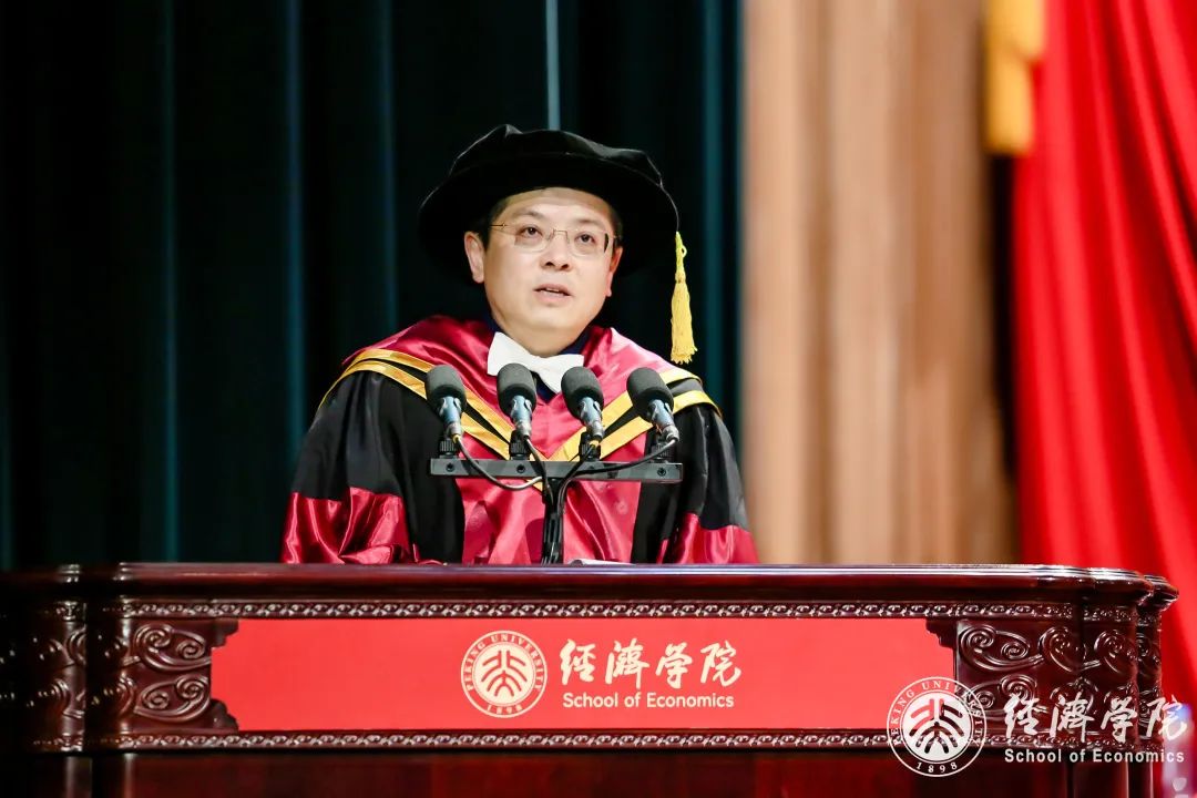 谢冕先生曾说:“一旦佩戴上了北大校徽,每个人顿时便有被选择的庄严感,因为这是一块圣地,百余年来中国社会的痛苦和追求,都在这里得到集聚和呈现。”我还清楚地记得,在几年前的开学典礼上,各位同学将沉甸甸的北大校徽别在了胸前;而今天你们的学位服上,同样印有北大校徽和“2026世界杯官网”的字样。从今天起,你们中的很多人就将从北大经院最资深的学子转变为最年轻的院友;但无论称呼如何、去往何处,你们永远是北大经院最深切的牵挂,而北大经院也将永远是你们最温暖的家园、最坚实的后盾!