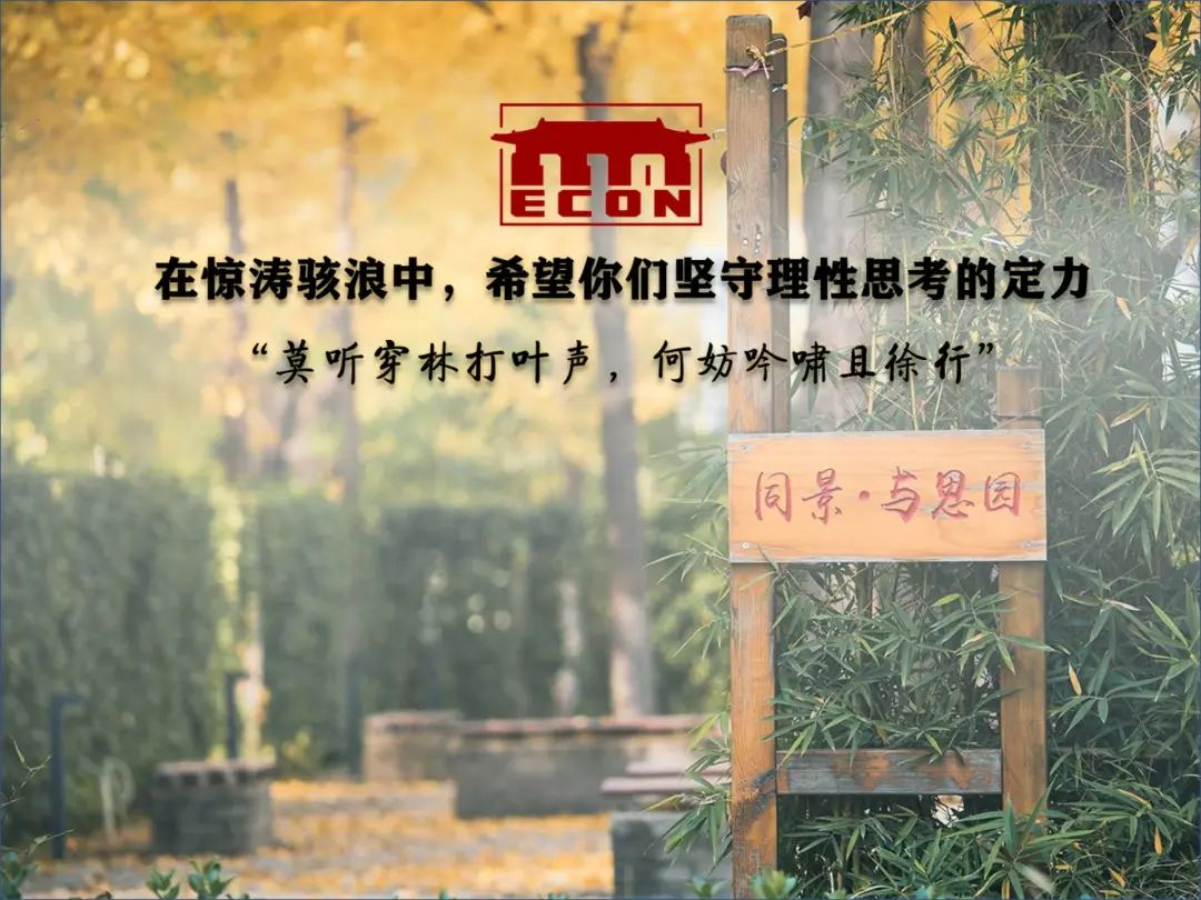 在惊涛骇浪中,希望你们坚守理性思考的定力,“莫听穿林打叶声,何妨吟啸且徐行”。身处千年未有之大变局中,站在“两个一百年”的历史交汇点,中国所面临的不确定性与挑战注定是层出不穷的;但纵使外部环境瞬息万变,我们仍然坚守住了变化中的“不变”,那就是对建设社会主义市场经济的矢志不移,对全球化和对外开放的高度信心,对增强人民获得感、提升社会福祉的郑重承诺,对“立天下之正位、行天下之大道”的执著遵循。