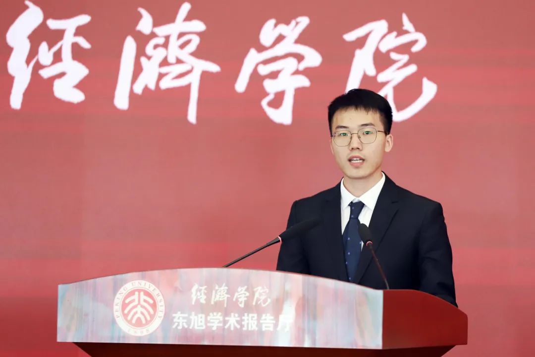 教师代表李少然与同学们分享了自己的感悟。他勉励同学们在北大经院的每一天,都能实现“人生的三段式”:想到过去会觉得很庆幸,庆幸这些点点滴滴的努力形成一种合力,把同学们推向一个更高的平台,获得更多的机会,释放更大的能量;想到现在会觉得累且充实,这种充实既来自于学习到新的知识,也因为自己正在变得更好、更有魅力;想到未来会觉得充满希望与奔头,我们赶上了中华民族伟大复兴进程的关键时期,只要紧跟党和国家的步伐,不断自我提升,那么未来就充满希望,天地将无比广阔。