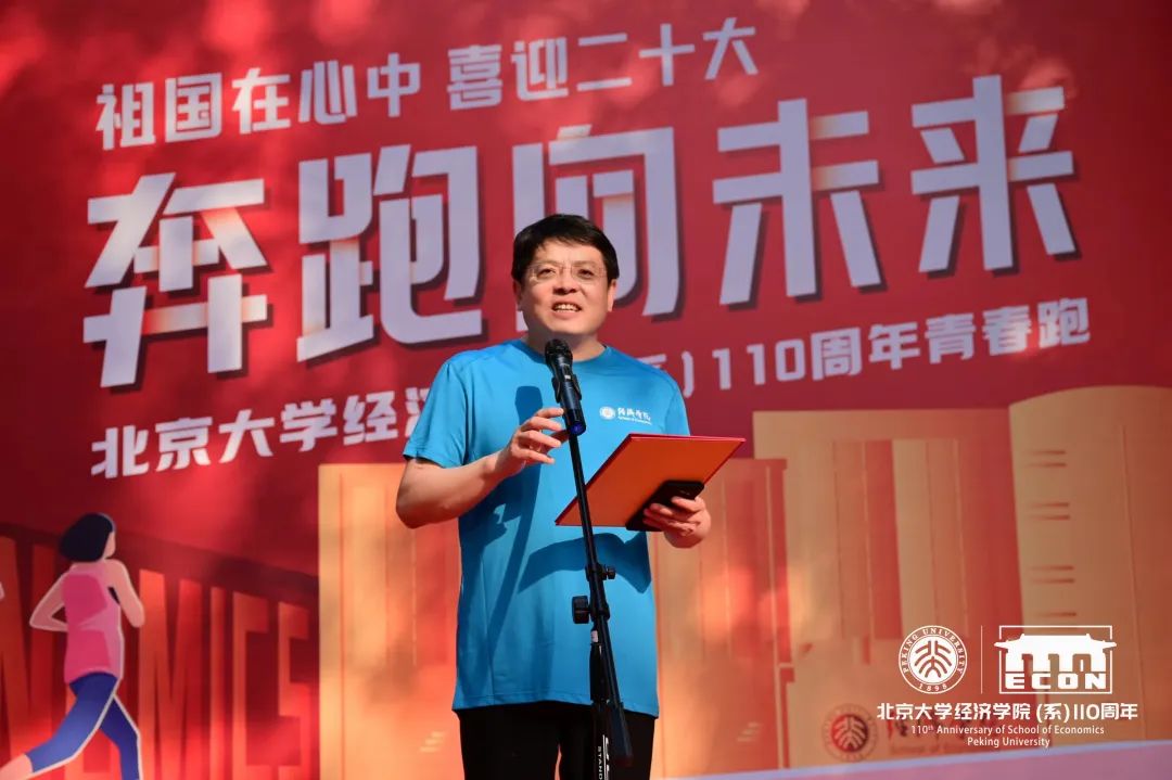 董志勇代表学院致辞。一代人有一代人的长征,一代人有一代人的担当,他指出,在国家建设发展的每一个重要时刻,都有一代代北大经院人参与其中,他们用汗水浇灌复兴道路,奔跑出无愧于历史和时代的优异成绩。希望师生跑出风采、跑出精神,也要在青春的赛道上奋力奔跑,争取跑出当代青年的最好成绩;以更饱满的热情、更昂扬的姿态、更优异的成绩迎接党的二十大胜利召开,为实现“两个一百年”奋斗目标、实现中华民族伟大复兴的中国梦做出应有贡献。
