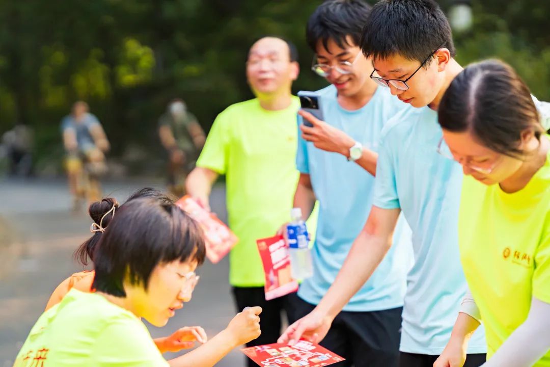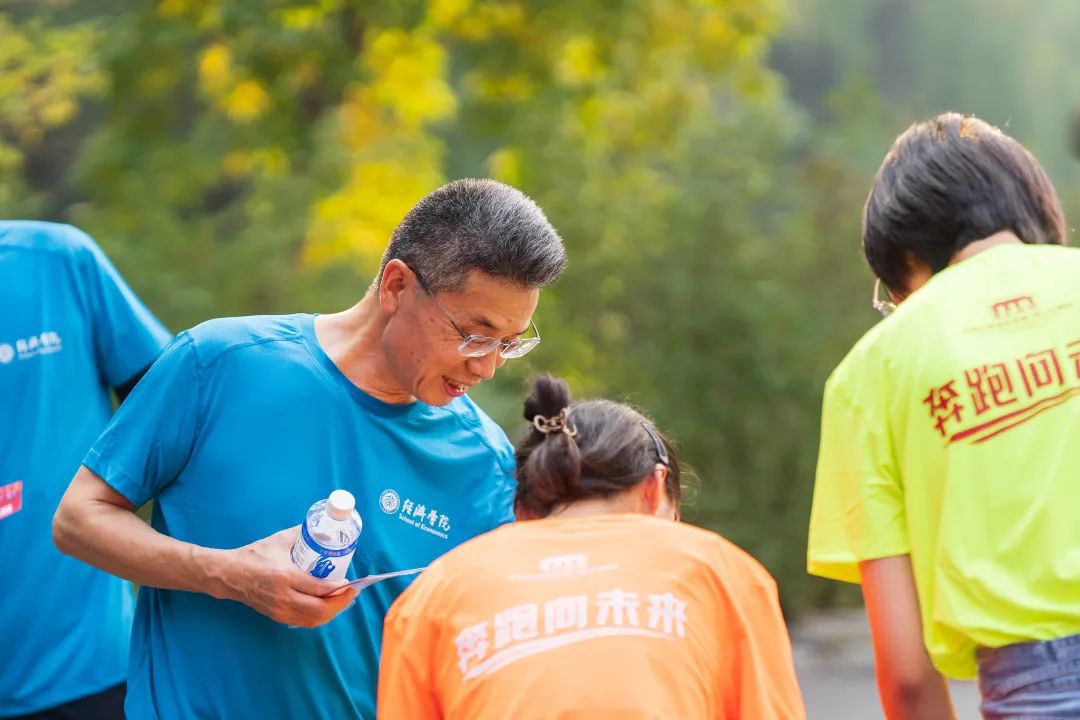终点亦是起点,初心始终未变。始终点的交汇寓意着经院人又将站在新的起点上,凝心聚力开新局,行稳致远启新篇。完成了长跑的师生们在留影墙前拍照留念,并领取了活动纪念证书和纪念品。