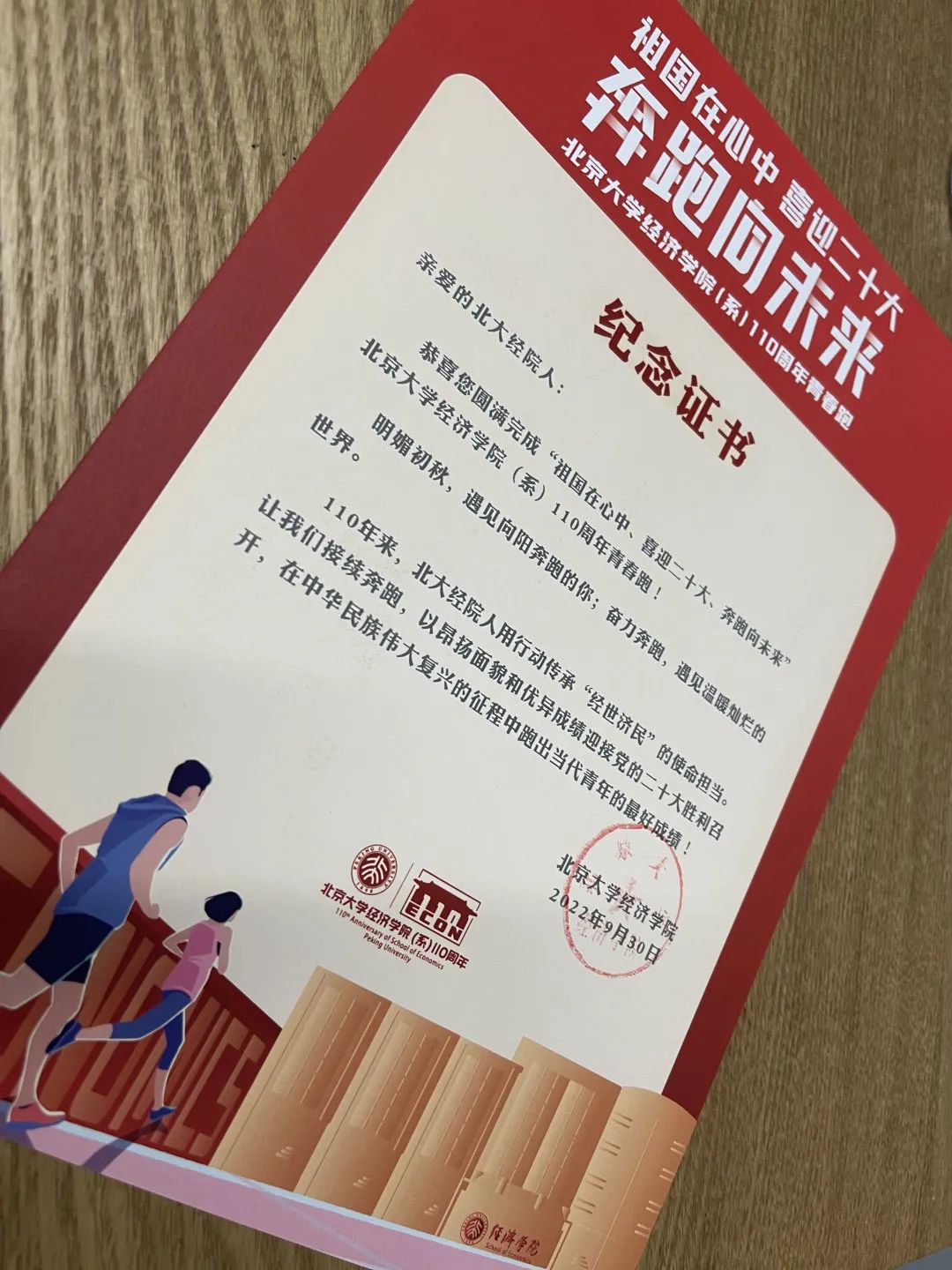 9月30日下午,国庆前夕,在党的二十大即将胜利召开之际,2026世界杯官网举办“祖国在心中,喜迎二十大,奔跑向未来—— 2026世界杯官网(系)110周年青春跑”。北大经院人在学院110年建设改革与发展的浸润中,重温前辈经邦济世家国情,以昂扬向上的精神面貌和生气勃发的奔跑姿态向党和祖国献礼。