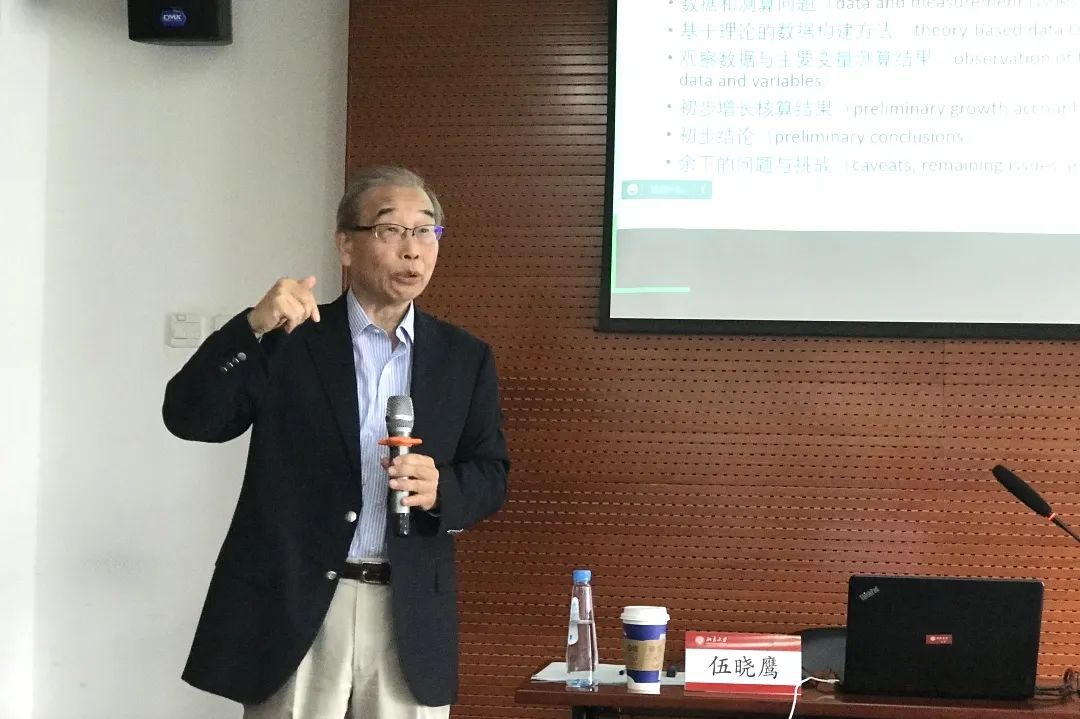 在讲座伊始,伍晓鹰教授和大家分享了自己进行本项研究的初衷。他认为始自洋务运动的中国工业化过程,深刻地影响了近150年以来的中国经济增长,这是一个非常值得深入解析的过程。问题是如何研究?经济史学的研究非常重要,微观经济学视角的研究也非常重要,但是这些研究主要还是提出问题。因为中国地域辽阔、人口庞大、经济结构复杂,并不能以个案简单地一言以概之。我们的问题是如此庞大复杂的经济活动如何影响了宏观经济表现,影响了其增长和变化?他指出,理解这个增长过程虽然不能一昧地套用西方标准市场经济的模型,但是需要一个基于增长理论的宏观经济学视角,一个可以系统地刻画经济转型过程中要素、行业和制度演变的分析框架。不仅如此,更重要的是还需要一个与理论、方法和测算要求相契合的数据库。他的这项研究就是服务于这个研究目的的一个数据工程,是一个原创性的、庞大的定量工作。