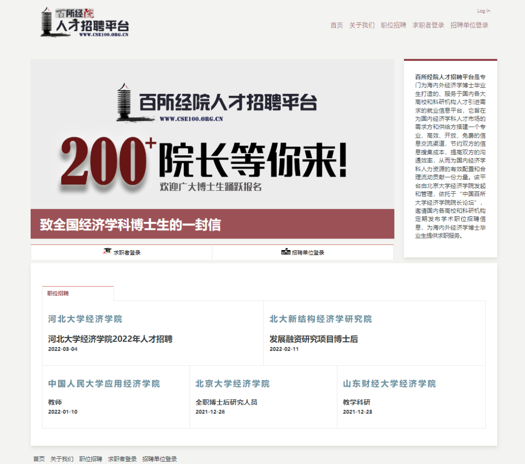 同时,为促进国内高校院系经济学科人才的培养与引进,搭建经济学科博士毕业生与用人单位交流平台,论坛特设立“人才招聘会”环节,邀请各高校院系发布招聘信息,共同参加线上招聘。