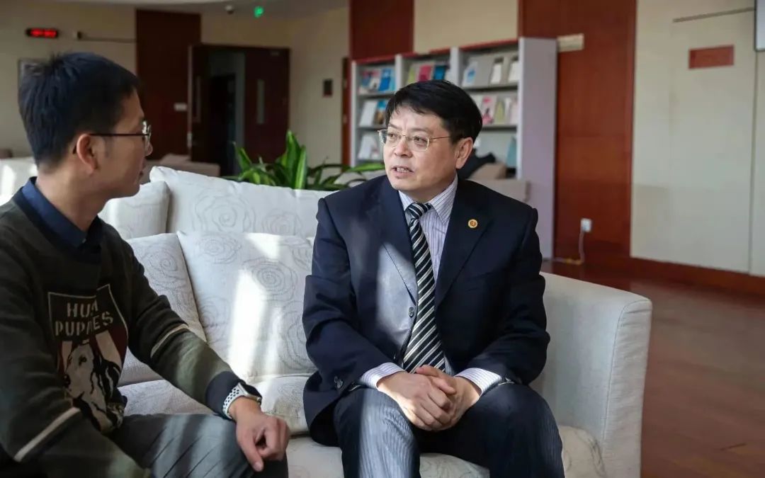 董志勇(右)接受新京报记者专访,解读2023年政府工作报告。新京报记者 郑新洽 摄