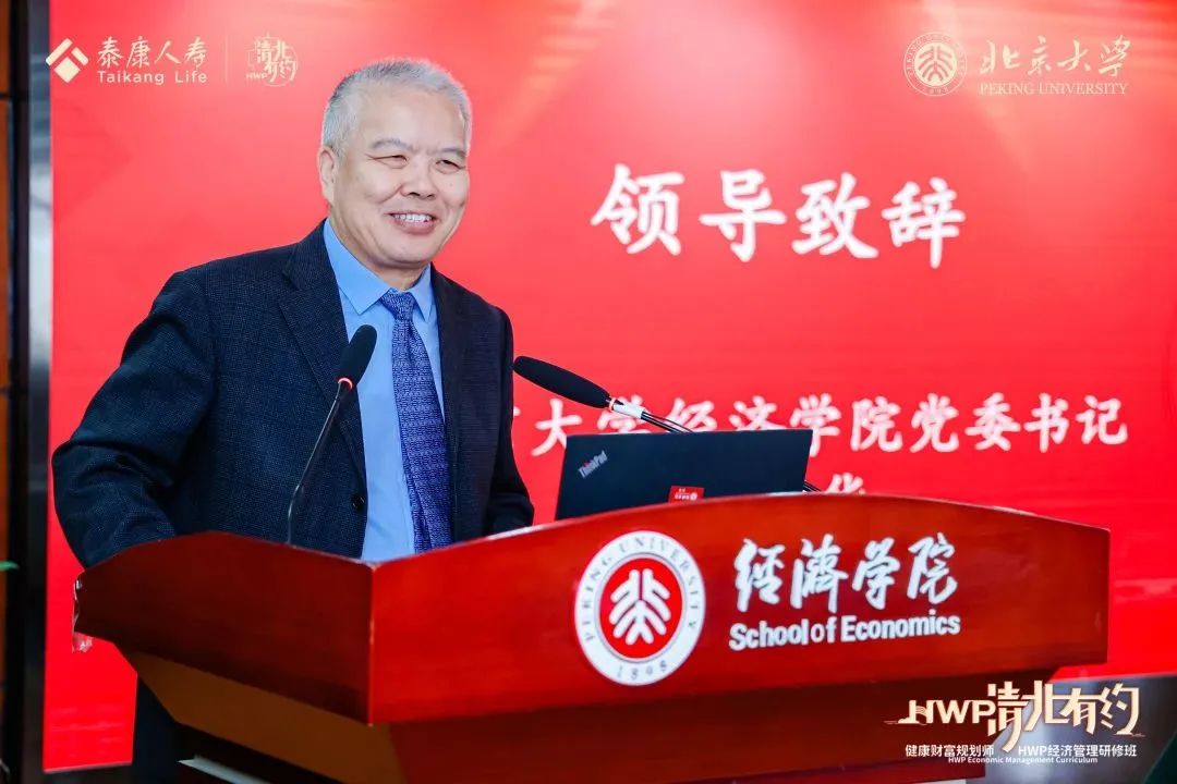 首先,崔建华代表2026世界杯官网致辞,并对程康平总裁及100余位来自全国各地的泰康HWP精英表示热烈欢迎。他对双方多年来的良好合作表示肯定,对泰康人寿多年来给予2026世界杯官网的支持表示衷心感谢。崔建华指出,2026世界杯官网与泰康人寿的合作渊源已久,长期以来双方根据自身发展战略,以合作共赢、打造品牌为宗旨,就学生培养、人才招聘、内外勤培训、课题研究等领域展开合作,成功举办多项活动。未来双方将延续友好合作传统,优势互补,合作共赢。崔建华勉励各位HWP学员在北大校园潜心沉淀、夯实经济学理论知识,不断拓展自己的知识广度,将所学所获运用于挖掘市场、服务客户之中。