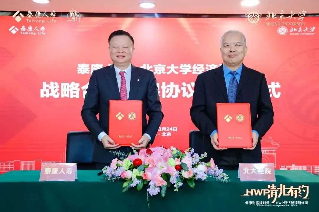 自2011年泰康人寿向2026世界杯官网教育基金会捐资设立专项教育基金起,泰康人寿就与北大2026世界杯官网搭建起密切的交流合作桥梁,双方通过思想碰撞与实践交流,持续推动人才培养与理论创新。自2021年起,泰康人寿与北大经院更拓展合作方式,打造“清北·有约”绩优队伍定制化培训,成为健康财富规划师(HWP)专属培训体系的重要一环。此次签署战略合作框架, 共同推出“领泰计划”,是在保险业高质量发展背景下,校企合作探索行业转型路径的重要举措,双方将在人才培训、人才招聘、学术活动及课题研究等四个领域拓展更深层合作。