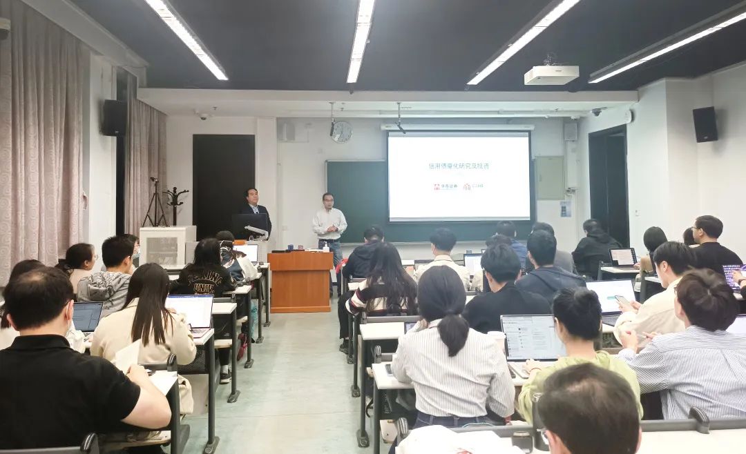 首先,吴恩全先生介绍了中国债市的规模、交易场所、主要交易者、发行人等基本信息,并讲解了当前中国债市中量化投资的使用现状。随后,吴恩全先生分析了在债券市场进行量化投资研究与交易的难点,包括信用研究公司覆盖大、数据可用性与质量差、机构定价能力弱、信用债缺乏流动性、缺少风险对冲的手段等,并讲述了华泰CAMS团队是如何解决这些困难,并从信用研究、定价以及交易产品三大角度介绍了华泰CAMS量化信用研究工作的成果,着重讲述了信用研究的量化研究框架体系以及对风险的预警和直接干预体系。最后,吴恩泉先生介绍了华泰CAMS的团队架构并欢迎有志于在债券量化投资领域做出成果的北大学子加入华泰CAMS团队。