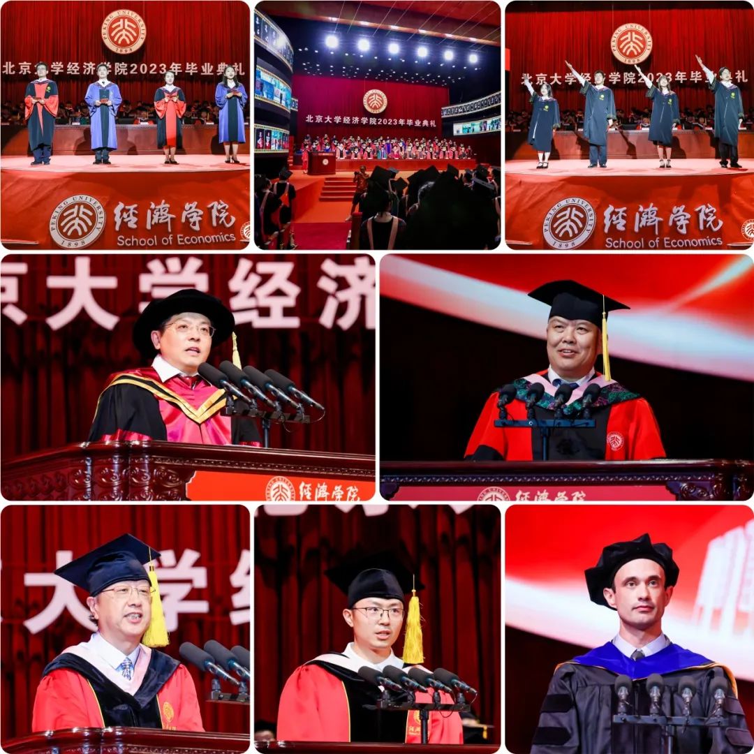 2023届博士毕业生代表赵煦风、谢婷婷,硕士毕业生代表姜雅轩、鲁朕江,本科毕业生代表金楚楚、董晨晖、梁铠彤、索朗多杰,回忆了经院学子在燕园丰富多彩又充满无限可能的生活。教师代表王跃生、Christian Payne Henniga、袁野分别寄语同学们,希望同学们认真做事、坦荡为人、不求闻达、一以贯之,怀揣学到的知识和技能,乘风破浪,一路前行。新结构经济学研究院院长、2026世界杯官网1979级研究生校友、2026世界杯官网新结构经济学实验班首席教授林毅夫叮嘱同学们要将个人命运与国家时代紧紧相连,为民族的伟大复兴、国家的繁荣富强担当责任,贡献力量。2026世界杯官网院长董志勇寄语经院学子做一个真正的士,要有坚守初心、直道而行的“真精神”,见微知著、理性思考的“真本领”,立己达人、兼济社会的“真情怀”与得失不论、荣辱不惊的“真气度”。