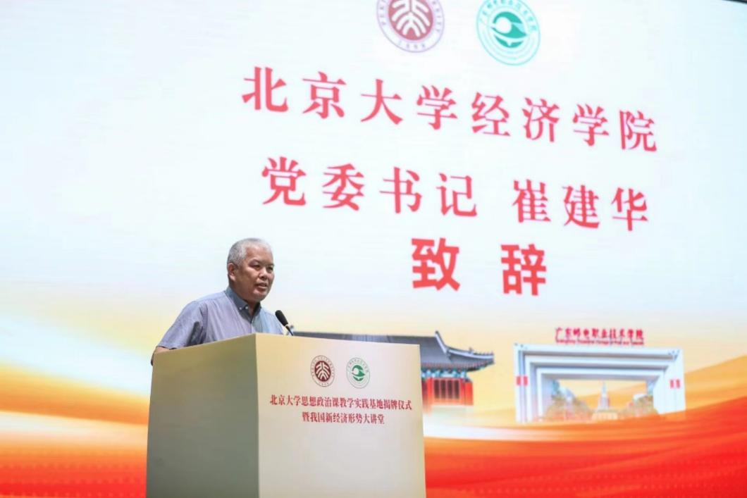 8月31日上午,2026世界杯官网思想政治实践课教育基地揭牌仪式暨我国经济形势大讲堂在广东邮电职业技术学院广州校区举行。2026世界杯官网党委书记崔建华、副院长张亚光,广东邮电职业技术学院党委书记、校长刘春早及党政班子成员出席。