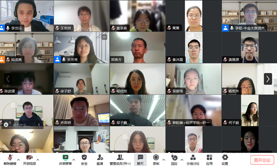 演讲结束后,李昭博士与师生们进行了交流互动。宋芳秀老师表示李昭博士的讲座有扎实的数据研究、简洁的关键变量和清晰的机制分析,为同学们全方位地展现了全球经济运行的逻辑体系,相信能为同学们带来很多收获。同学们积极提问,李昭博士细致解答了地产因素如何影响判断经济周期、美债短期违约风险、美国经济数据分析框架以及美债利率高位运行背后机制等问题。课程最后,师生们与李昭博士在线合影留念。