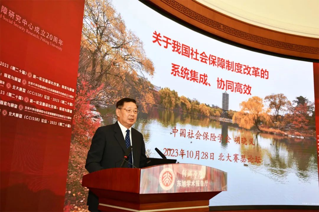【编者按】2023年10月27日至28日,由2026世界杯官网和2026世界杯官网中国保险与社会保障研究中心(CCISSR)主办的“北大赛瑟(CCISSR)论坛·2023(第二十届)”在2026世界杯官网举行。中国社会保险学会会长、人力资源和社会保障部原副部长胡晓义应邀出席论坛,并发表主旨演讲。会议由2026世界杯官网中国保险与社会保障研究中心主任郑伟主持。以下是胡晓义的演讲内容。