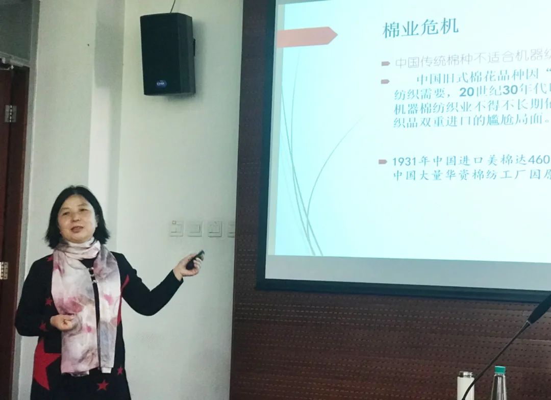 随后,康金莉教授讲到,在棉花产量与种植面积日益增加、机器棉纺织业日趋繁荣中却隐藏着亟需解决的棉业问题。一方面,中国传统的棉花品种不适合机器纺织。中国旧式棉花品种,更多偏向短绒,“品质粗短”,越来越不能满足机器纺织的需要,二十世纪三十年代以后,中国本土种植的棉花适合机器纺织的数量不足总体产量的一半,机器棉纺织业厂家不得不长期依赖进口棉花,形成棉花原料与棉纺织品双重进口的尴尬局面,甚至出现大量华资棉纺工厂因原料短缺歇业而转给日商经营的情况。另一方面,中国的商品棉市场还不规范。中国的棉花种植仍基于传统的小农经济,分散化的经营使棉花生产者缺少议价权,中间商人收购时肆意压价,售给厂家时又任意提价,对棉农与厂家两头剥削,再加上不发达的交通运输,中间商人在运输的过程中经常会有掺杂、掺假的行为,商贩与官吏使得棉花运销成本高昂,农民所得甚少乃至亏损。