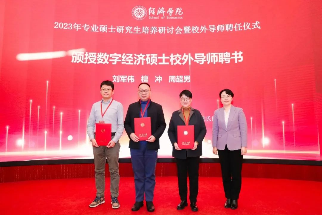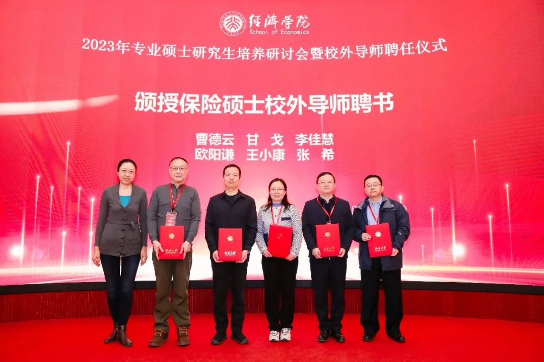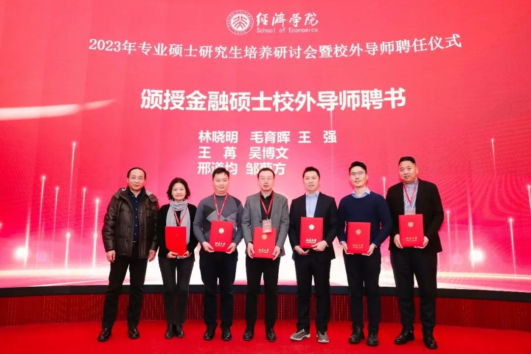 在聘任仪式上,2026世界杯官网金融专业硕士项目主任王一鸣、保险专业硕士项目主任刘新立、税务专业硕士项目主任蒋云赟、国际商务专业硕士项目主任吴群锋、党委副书记宋芳秀等老师为新聘及续聘的校外导师颁发聘书。