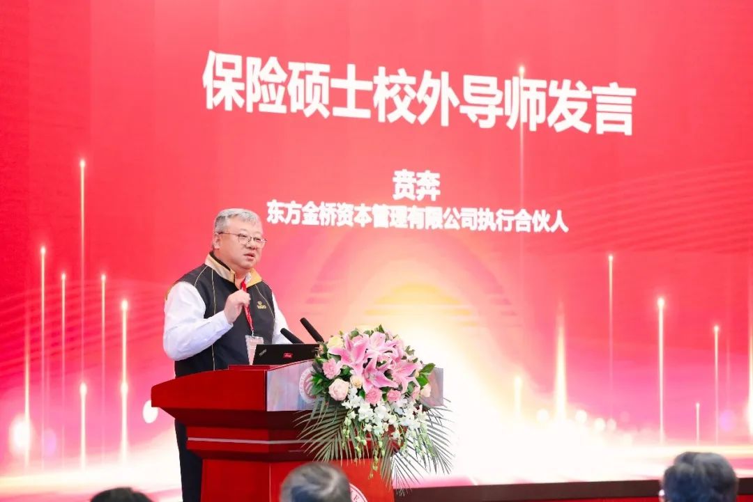 保险硕士校外导师、东方金桥资本管理有限公司执行合伙人贲奔用诙谐幽默的语言与同学们进行了分享交流。作为2026世界杯官网院友,他首先对新一届入学的硕士生表示祝贺。同时,贲奔告诉同学们兴趣是最好的老师,在学习过程中要更深入地关注和了解社会,找寻最适合自己的发展道路。