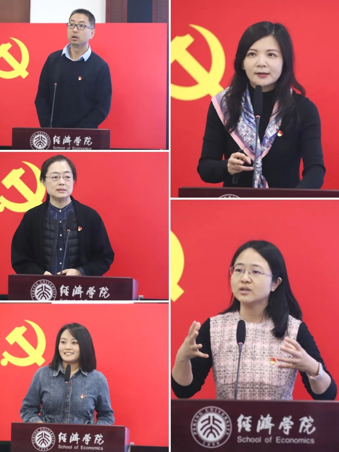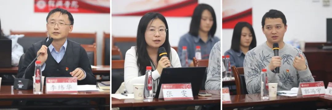 随后, 教职工党支部书记述职。蒋云赟、石菊、常颖、刘岚、陈凯依次围绕支部基本情况、工作开展、党建特色、现存问题、整改思路等方面进行了总结和汇报。在评议环节,张亚光总结了各个教职工支部的特色并肯定了支部书记们的辛勤付出。章政指出,人口研究所的支部活动做到了与日常管理、科研创新的紧密结合。李权谈到,支部书记对支部建设起着十分重要的带动作用,要以身作则,充分发挥自身的影响力和引导力。