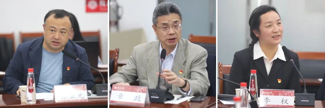 其后,学生党支部书记述职。大家介绍了支部的基本情况并着重回顾了2023年度的日常工作与特色活动,总结经验、分析问题,并提出了下一步的工作思路。党委委员对支部工作进行了细致点评。锁凌燕指出,各支部在活动组织中很好地融合了专业特色,并提出要在支部换届工作的基础上,做好以老带新,确保支部平稳有序运行。张亚光在点评中肯定了亮点活动,并希望各支部委员明确分工,以更高效地开展工作。周超在评议中谈到,丰富多样的支部活动能够很好地调动学生积极性,希望同学们在支部中真正做到学有所获。章政赞扬了党支部书记们对工作的高度热情和对支部活动的精心组织,他指出,在带动支部内同学之余,各支部要注意扩大党组织的辐射和带动作用。李权指出了各支部联学联建的工作亮点,并建议进一步做好经验总结。