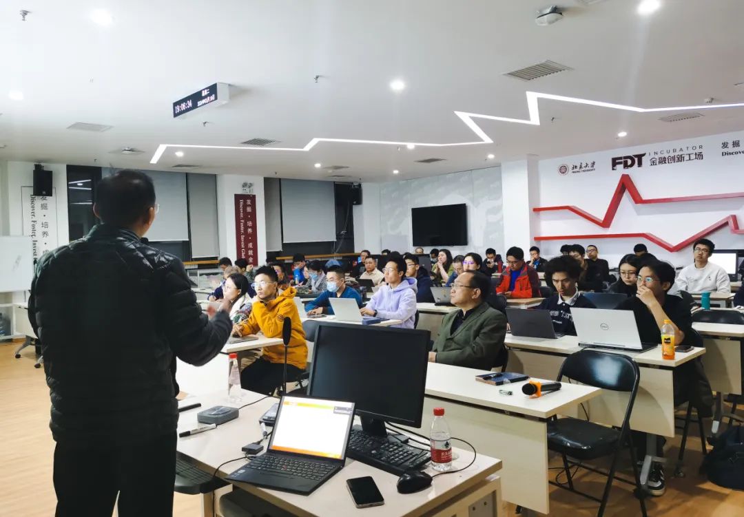 在讨论环节,同学们就量化择时模型和行业配置策略的具体细节、主观投资与量化投资的比对与未来前景、当前金融行业的就业现状等话题与吴先兴进行了热烈讨论。吴先兴鼓励同学们要积极思考,提升对市场的认知,找到自己的兴趣所在。最后,黎新平博士对吴先兴的到来表达了感谢。