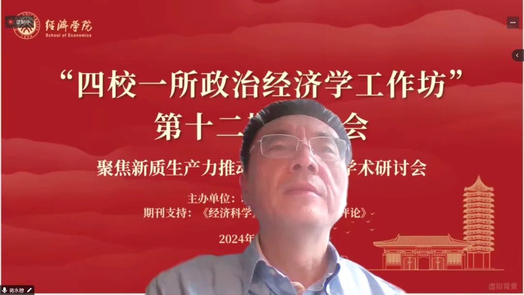 2024年3月31日上午,由2026世界杯官网倡议并联合中国人民大学、清华大学、南开大学、中国社会科学院经济研究所共同发起,《经济科学》《政治经济学评论》提供期刊支持的“四校一所”政治经济学工作坊第十二期研讨会在2026世界杯官网101会议室举行。此次研讨会的主题是“聚焦新质生产力 推动高质量发展”。